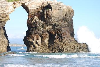 Playa As Catedrais, Ribadeo (Lugo): sus impresionantes acantilados de formas a pie de playa la convierten en un lugar increíble por el que pasear entre sus bóvedas bajo su intenso azul del mar.