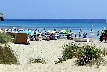 Esta playa de fina arena blanca se encuentra totalmente abierta al mar, mide 3 km de longitud ( la más grande de la isla ), y es visitada habitualmente por menorquines y turistas que viajan en familia.