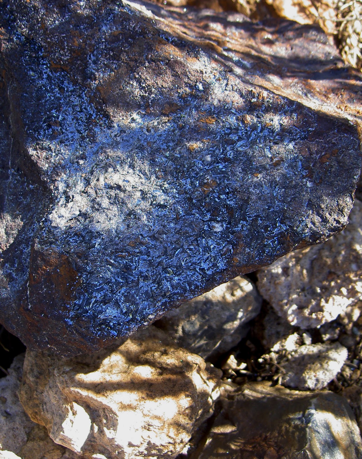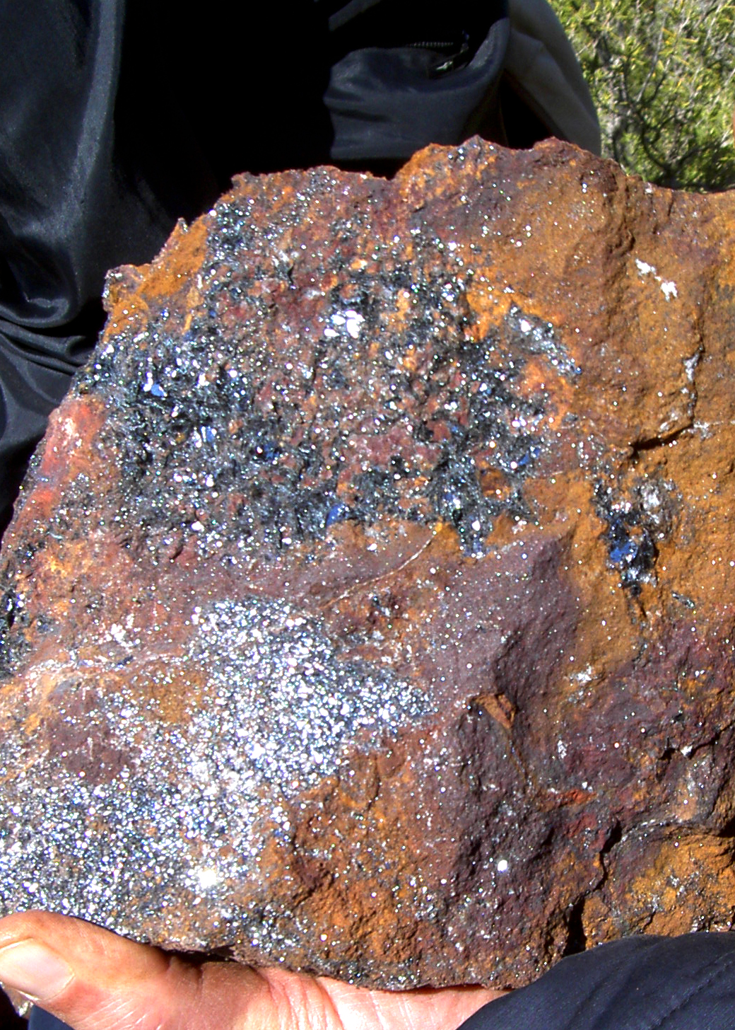 La hematites recubre los contactos, pero no es fácil que pase de un fino recubrimiento muy brillante.