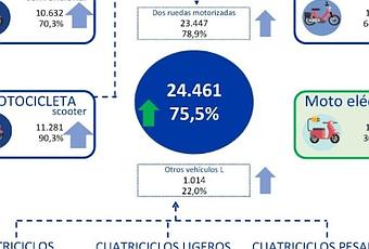Año 2024: 247.927 registros y un crecimiento del +10%En cuanto al cierre de año, en 2024 se contabilizaron un total de 247.927 matriculaciones, lo que supone un crecimiento del +10% respecto a 2023. Las motocicletas acumularon un total de 222.105 unidades (+11,5%), siendo el canal particular el predominante con 187.059 registros (+10,6%). En cuanto a cilindradas, las motos de hasta 125 cc acumularon un total de 115.389 uds. (+7,1%), las de media cilindrada (hasta 750 cc) sumaron 68.455 uds (+16%) y las de alta cilindrada (más de 750 cc) registraron 38.261 uds. (+18,6%). Por tipo de uso, el escúter acumuló el mayor volumen de registros con un total de117.126 uds. (+6%), seguido de la moto de carretera con 94.116 uds. (+17,1%) y la moto de campo con 10.719 uds. (+31,6%)