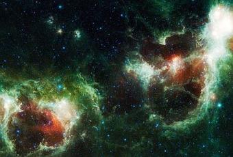 La imagen anterior fue obtenida en luz infrarroja por el recientemente lanzado telescopio WISE. La luz infrarroja penetra bien dentro de las burbujas vastas y complejas creadas por estrellas recién formadas en el interior de estas dos regiones de formación de estrellas masivas. Los estudios sobre las estrellas y el polvo, como los encontrados en las Nebulosas del Corazón y del Alma, se han centrado en cómo se forman las estrellas masivas y cómo afectan su medio ambiente.
