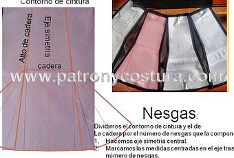 Cintura: ésta la dividimos por el número de nesgas que tenga la falda.