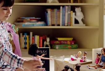 Al finalizar el vídeo vemos a una de las niñas jugando con muñecas Barbie y desempeñando el mismo papel que ha protagonizado frente a los adultos, la de profesora universitaria, la escena se acompaña del mensaje “Cuando un niña juega con Barbie se imagina todo lo que puede llegar a ser”.