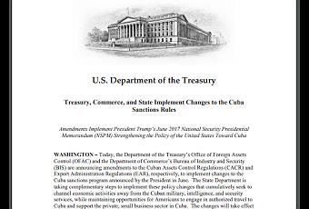 Los departamentos de Estado, Comercio y el Tesoro dieron a conocer la adopción de 'acciones coordinadas' para implementar el documento firmado por el presidente Donald Trump el 16 de junio pasado en Miami, Florida, las cuales incluyen vetar a los estadounidenses de hacer transacciones con más de 180 entidades de la nación caribeña, informó Prensa Latina.