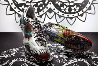 El diseño llama la atención por su estampado “tatuado”. La bota derecha está ocupada por un cráneo negro que invoca al poder y la fuerza, mientras que en la bota derecha se pueden ver diferentes motivos brillantes, entre ellos, una rosa. Al parecer, ambas representan la dualidad entre el odio y el amor.