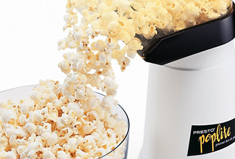 Las palomitas de maíz de microondas contienen más de un 40% de grasa, si preparamos las palomitas de maíz en una olla con aceite su cotenido en grasa será inferior al 30%, y si preparamos las palomitas de maíz con aire caliente entonces el contenido en grasa será mínimo. Para ello debemos emplear máquinas de aire caliente para palomitas como la que vemos en la imagen.