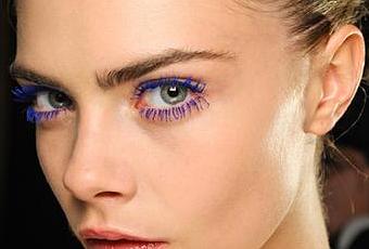 Pat McGrath, para cumplir a rajatabla con la consigna de McCartney –-que sólo quería "chicas con color en sus pestañas"– tuvo que hacer buen uso del gel cobalto creado específicamente para la colección, conjugado con discretas capas de máscara negra para enmarcar el resultado.