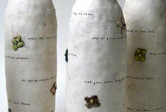 Quiero compartir con todos vosotros uno de mis últimos hallazgos, la obra de la artista estadounidense Rae Dunn, quien utiliza el barro para crear unas preciosas piezas (jarrones, menaje, servilleteros, etc.), fuertemente influídas por la filosofía japonesa del Wabi Sabi.