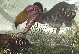 Las aves del terror son consideradas (con las manos en la cintura) como temibles depredadoras que no dan risa, no se ven absurdas y no parecen pavos, faisanes, u otros apelativos "ofensivos", sólo hay que mirar su nombre común: "aves del terror". Arte por Andreas "elperdido1965".Además, la postura de que las plumas "no dan miedo" tiene otra arista aparte de negar la realidad y la hipocresía del ejemplo aves del terror. Cuando alguien dice eso, estoy 100% seguro que nunca ha estado cerca de un ave rapaz grande sin una reja de por medio. Un águila es mucho más pequeña que muchos dinosaurios no avianos emplumados y es aterrador estar sosteniendo una, después de todo, pueden desgarrar fácilmente nuestra piel. Además, tenemos a las ratitas (avestruces, emúes, ñandúes y parientes) y especialmente a los casuarios que ya han cobrado víctimas humanas (y eso que no son cazadores).