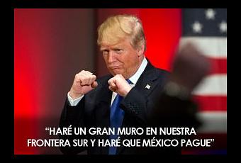 Las frases racistas y xenófobas han enmarcado las declaraciones Trump, quien ha anunciado su gran deseo de controlar e incluso impedir el flujo de inmigrantes a su país. Para esto, su más polémico anuncio: el muro en la frontera de México. Por esta media, se ha visto en una pugna con el mandatario mexicano Enrique Peña nieto, a quien quiere obligar a pagar la construcción del muro.
