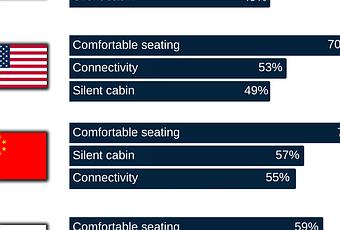 Observar las actividades mientras viajan en un vehículo autónomo, escuchar música y podcasts es la principal actividad de los usuarios de automóviles en todo el mundo mientras conducen, con un 66% en EE. UU., un 61% en China y Japón, y un 56% en Alemania. Hablar con otros pasajeros ocupa un puesto igualmente alto, mientras que dormir o trabajar es menos importante, lo que destaca la necesidad de mesas o asientos reclinables.