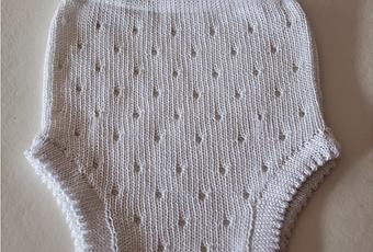Siempre me gusta variar un poquito, y esta vez el cambio está en las gomas de las piernas. Hasta ahora siempre las había hecho ajustables con lazos y rematadas las piernitas con ganchillo.