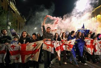Por décimo día consecutivo, en el centro de Tiflis, la capital de Georgia, y en otras ciudades del país, miles de manifestantes protestan contra el gobierno. Hay grupos que «disparan» proyecciones luminosas con rayos láser en la fachada del Parlamento y contra los policías. Otros, envueltos en la bandera georgiana con la cruz roja de San Jorge sobre fondo blanco, piden «elecciones ya».