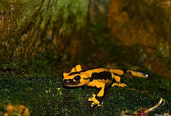 Salamandra común en una noche lluviosa entre las piedras del Monasterio de las PelayasAfortunadamente, muchas de esas falsas creencias ya se están perdiendo y gracias a la difusión de artículos, trabajos, o simplemente gracias al boca a boca, mucha gente está empezando a ver a las salamandras como lo que son, unos animales inofensivos, beneficiosos y además muy bonitos.