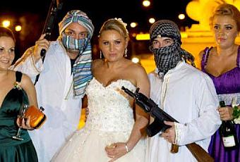 Bodas Rumanas. La tradición es raptar a la novia. Son los amigos del novio quienes lo hacen, y tiene que ser con toda la parafernalia y actitud, y llevan a la novia a algún lugar emblemático. Ella tiene que ir vestida de blanco y lista para tomarse fotos como las que ya conocemos de boda, pero con el tono humorístico que el juego del rapto requiere. Entonces el novio tiene que negociar la liberación, que casi siempre se trata de alcohol o una confesión embarazosa. Después de todo el show, los novios están listos para la ceremonia en la iglesia ortodoxa rumana.