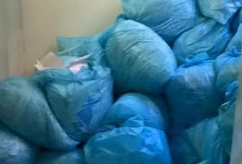 Bolsas de basura con documentos destruidos en el interior, amontonadas frentes al Ayuntamiento de Madrid.