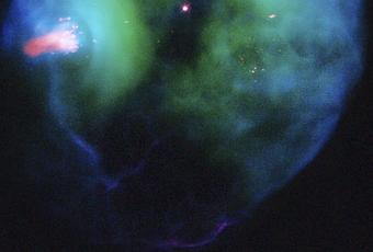 Hubble Sondea de una burbuja brillante de gas y polvo que rodea una estrella moribunda, el telescopio espacial revela una gran cantidad de estructuras nunca antes vistas. El objeto, llamado NGC 2371, es una nebulosa planetaria, los restos brillantes de una estrella similar al Sol. La estrella remanente es visible en el centro de NGC 2371, es el núcleo súpercaliente de la antigua gigante roja, ahora despojada de sus capas exteriores. Su temperatura superficial es un abrasador 240.000 grados Fahrenheit. NGC 2371 se encuentra a unos 4.300 años luz de distancia en la constelación de Géminis. La imagen del Hubble revela varias características notables, sobre todo las prominentes nubes de color rosa en lados opuestos de la estrella central. Este color indica que es relativamente fría y densa, en comparación con el resto del gas que rodea la nebulosa. Lo que también llama la atención son los numerosos puntos muy pequeños en rosa, marcando nudos relativamente densos y pequeñas de gas, que también se encuentran en lados diametralmente opuestos de la estrella. Estas características parecen representar la expulsión de gas de la estrella a lo largo de una dirección específica. La dirección del chorro ha cambiado con el tiempo durante los últimos miles de años. La razón de este comportamiento no se entiende bien, pero podría estar relacionado con la posible presencia de una segunda estrella que orbita la estrella central visible.