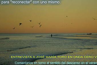Desarrollo de la entrevista. 1:18 El descanso no consiste en salir sino en regresar. 1:30 Sobre el DESCANSER: otro modo de vivir nuestro descanso... DESCANSAR PARA SER. Propuestas para liberarnos del secuestro del descanso. Turismo vs. Descanso. 2:45 El descanso no es tanto un desconectar sino un "reconectar" con uno mismo. No sólo reponer fuerzas sino recomponer nuestra presencia en el mundo. 3:15 Sobre lo que aporta el libro MI ALEGRÍA SOBRE EL PUENTE.También puedes escuchar y descargar la entrevista en IVOOX.