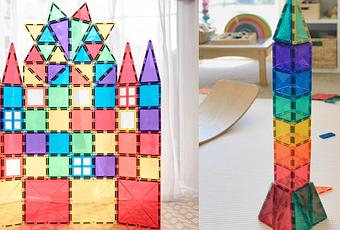 El mayor reto de las construcciones apilables es encajar las piezas, motivo de frustración a edades tempranas pero existen muchísimas opciones para que esto no sea un problema como las construcciones con imanes que además al ser trasparentes son ideales para mesas de luz y permiten combinaciones en tres dimensiones o en superficies planas. Muchos incluyen una guía de juego con ideas como los productos de Connetix.