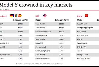 Las ventas de BEV en China crecieron un 15% en el primer trimestre de 2023 frente al primer trimestre de 2022, un resultado impresionante si se tiene en cuenta que las ventas totales de todas las cadenas cinemáticas en ese país descendieron un 7% en el mismo periodo. Sin embargo, el crecimiento de las ventas de BEV se situó muy por debajo del registrado en trimestres anteriores. Muchos consumidores chinos se habían apresurado a comprar BEV antes de la finalización de la subvención gubernamental a finales de 2022, y era inevitable que se produjera una cierta ralentización de la demanda inmediatamente después de este cambio.