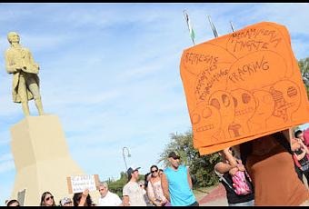 "Vine (a la marcha) porque con nuestro pueblo estamos generando conciencia (por la contaminación) aunque para mí, el río no esta contaminado por desechos cloacales, ni basura que tira la gente: sino por los desechos químicos del petróleo. Estamos acá para que la gente tome conciencia y pelee por la vida porque el agua es la vida".