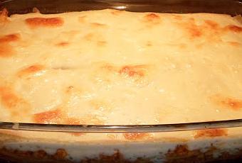 - Para finalizar el plato, cogemos una fuente y vamos poniendo una capa de pasta de lasgna, una de salsa boloñesa y así sucesivamente hasta terminar con una capa de pasta de lasagna. Cuando ya este añadimos la BECHAMEL que prepararemos a continuación y queso rallado. Precalentamos el horno a 180ºC y cuando se gratine el queso rayado ¡¡ YA ESTARÁ LISTO!!