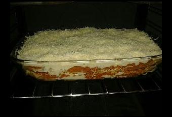 - Precalentamos 10 minutos el horno a 200ºC y después introducimos la lasaña (en una fuente mejor) hasta que el queso quede gratinado. Después, la sacamos y comemos caliente.