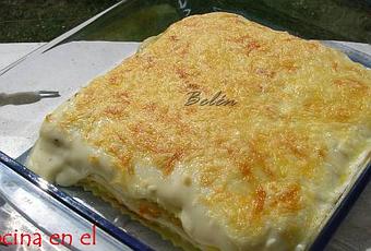Aunque nos encanta la pasta en casa, la lasaña es un plato que no hago mucho. Sobre todo porque intento que salga "presentable" y lo pongo entre comillas porque no sabría decir cual es perfecta, diría la de las fotos de las revistas, la de muchos de vuestros blogs. Pero a mi se me suele desmoronar y con lo cual la foto ya no vale. Así que cuando me encontré con esta, precisamente en una revista, supe que sería de lo mas fácil y que si quedaría bien sin terminar desparramada por la fuente jajaja. Por eso lo intenté y por primera vez una lasaña hecha con pasta no se me ha venido a bajo y se presenta en el blog jajaja. Además queda super rica, es de lo más fácil de hacer, un plato barato que llena y cunde.