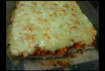 Ahora vamos a poner en una bandeja el pan de molde sin corteza (se la cortamos antes y ya esta). Si vemos que nos quedan huecos, solo debemos añadir más pan. Con un pincel ponemos el tomate frito encima de las rebanadas hasta que quede una buena capa de tomate (no solo hay que pintarlo un poco, sino que tenga tomate).