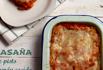 Cocemos las placas de lasaña como nos indique la caja y montamos la lasaña. Primero placas de lasaña, luego pisto, jamón cocido y queso, así sucesivamente. Terminamos con pisto y ponemos por encima los quesos rallados (que podéis variarlos a vuestro gusto).