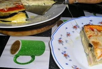 Ingredientes:8 huevos2 berenjenas pequeñas1 calabacín mediano4 lonchas de jamón cocido6 lonchas de quesotomate frítomozzarella ralladaaceite de olivasal