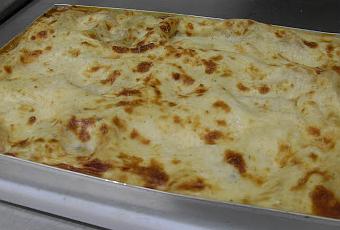 Preparar una bandeja apta para el horno, y ponemos en ella una base de bechamel, colocamos encima las láminas de lasaña cubriendo toda la bandeja.