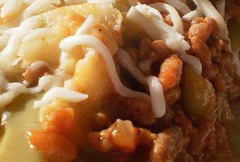 En una fuente especial para hornear poner una primera capa muy fina de bechamel, a continuación una capa de lasaña, seguidamente otra capa de carne con salsa y así sucesivamente.Sobre la última capa de lasaña, poner sólo bechamel y cubrir con queso rallado.Hornear durante unos 20 minutos a 180º C….y si gustan como en “Mi cocina” volver a aderezar con queso mozzarella…..