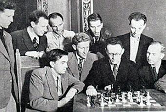Comenzó Flohr recordando que en 1933, en el escenario de la hermosa Sala de Columnas de la Casa de los Sindicatos de Moscú, donde conoció a Botvinnik en un encuentro jalonado por una pancarta con el lema: "Alcanza y supera a Occidente en el campo del arte del Ajedrez", fue el principio de algo que los ajedrecistas soviéticos cumplieron luego brillantemente.