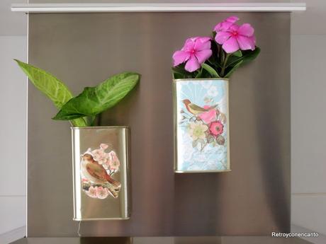 Si una caja nos gusta, una lata ni os contamos... Una de nosotras va recopilando todas las que consume en su casa para, una vez limpias, dejarlas en el mueble de los chismes reciclados del taller, a la espera de que surja alguna idea o inspiración... Y, si echa la vista atrás, es capaz de encontrar el origen de su afinidad hacia estos contenedores metálicos de alimentos; la afición de su abuelo por "las latillas", como él las llamaba... Adoraba las de conservas; chipirones en su tinta, mejillones en escabeche, langostillos, berberechos, calamares en salsa americana...-¡Vamos a tomarnos una latilla! decía, y esa era su forma favorita de convidarnos. Por eso, es ver una lata, del tipo que sea, y asociarlo a esas otras "latillas" que ya, por desgracia, no compartimos, pero que quedaron para siempre impregnadas de momentos de cariño. Nos encanta encontrar y recopilar formas diferentes de dar salida decorativa a estos versátiles recipientes, capaces incluso, de flotar... Foto Foto Foto Foto ¿Tenéis alguna "latilla" flotadora por ahí?, ¿Y con qué uso?