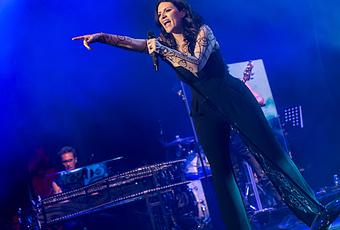 Dentro del firmamento de estrellas de Starlite, Laura Pausini es una de más brillantes y así lo ha demostrado esta noche con su espectacular directo de más de dos horas ante un auditorio entregado que ha vibrado con los grandes éxitos de una carrera plagada de éxitos, entre los que se han incluido Entre tú y Mil mares, Primavera anticipada, Inolvidable, Surrender, Amores Extraños, Se Fue o La Soledad. Este concierto ha sido el más especial para la artista, tanto por el lugar, una cantera rodeada de vegetación con una acústica inmejorable, como por ser el último show de su gira “The Greatest Hits World Tour”, que la ha llevado durante dos años por escenarios de todo el mundo y que ha decidido cerrar en Starlite, su única parada en España y que le ha servido para celebrar sus veinte años sobre los escenarios. “Me siento feliz aquí en Starlite. Tras dos años de gira por todo el mundo, no se me ocurre un lugar mejor para poner el broche de oro a esta etapa. Es un lugar increíble, el escenario es la propia naturaleza. Es algo casi místico y tiene un público internacional muy interesante. De hecho, ¡también quiero venir de público!”, ha comentado la artista, que ha querido agradecer a la organización su invitación “Doy gracias a Sandra García-Sanjuán, Sandrita, por haberme dicho que viniera y de lograr que esté hoy aquí, con toda la gente del sur y de tantos lugares”. Entre éxito y éxito, aplausos, gritos y bailes, Laura ha conectado con el público de un modo muy especial, contándoles anécdotas muy personales de su vida, entre ellas el fallecimiento de su abuela, a la que se encontraba muy unida, momento que ha dado pie a la canción En cambio no, que le dedicó a ella y que ha brindado hoy a Antonio, un miembro del público que había pasado por una pérdida familiar recientemente “Sé que no te pudiste despedir de tu familiar y quiero que esta sea tu despedida. Va por ti”. A la emoción del público, se han sumado las lágrimas de Laura al cantar este tema. El auditorio la ha arropado con una cálida ovación, que la ha ayudado a reponerse para volver con toda la energía con nuevos temas de su carrera. Entre el público, grupos de brasileños, argentinos, portugueses, italianos o españoles, entre otros, que no han dudado en levantar carteles diciéndole “te queremos” en varios idiomas, así como banderas de sus países y a los que Laura ha correspondido hablándoles en sus respectivos idiomas.