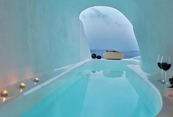Lava Caves esta situado a 4,2 km de la playa de cabo Columo, en Oia, al sur de la Isla de Santorini, Grecia.