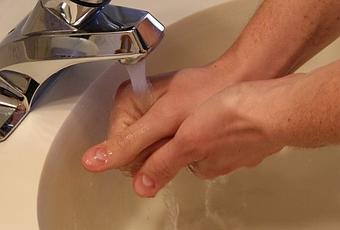 - En primer lugar se mojan las manos con abundante agua corriente; debe estar fría, o, en su defecto tibia. No es aconsejable lavarse las manos con agua caliente.