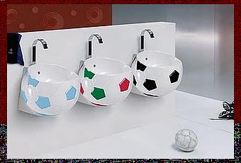 Estamos "Ad-portas" del próximo mundial Sudafrica 2010, y junto con ello toda la onda mundialera que un evento como este conlleva. El mundo de la decoración no es la excepción, por eso les presentamos la propuesta de la empresa Meridiana con unos lavamanos simuladores de pelotas de fútbol, para que los niños de la casa respiren la pasión que desprende el deporte más exitoso en todo el mundo. Una manera divertida de comenzar el día y disfrutar de toda esta maravillosa magia que despierta en multitudes. En diferentes y coloridos modelos, estos lavabos con forma de pelota de fútbol son realmente preciosos.Vía trendir