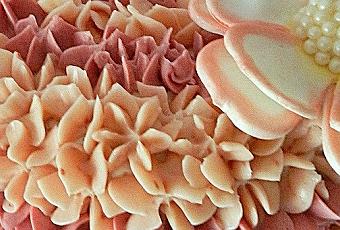 Pasado ese rato con la boquilla 1M decoraremos la tarta. En este caso utilicé dos mangas con dos boquillas iguales. La mitad del swiss merengue lo dejé de rosita pálido que es el color que quedó al añadirle las frambuesas. La otra mitad la teñí con un rosa más oscuro. Alterné ambos colores para la decoración.