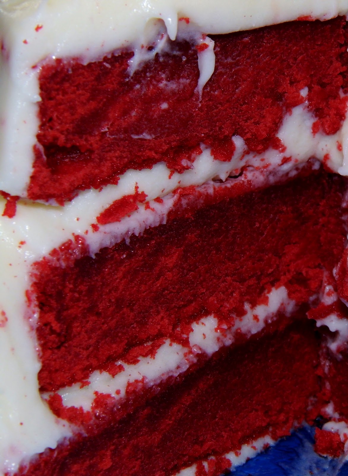 Para el bizcocho: 250ml de leche El zumo de medio limón 250 gr de harina 1/2 cucharadita de sal 1 cucharada de cacao en polvo puro 120 gr de mantequilla a temperatura ambiente 300 gr de azúcar 2 huevos 1 cucharadita de aroma de vainilla 1 cucharada de levadura en polvo 1 cucharada de vinagre de vino blanco Medio bote de colorante rojo Wilton en pasta (Como 4 o 5 cucharillas de café) Para la crema: Pinchad Aquí Para hacer el bizcocho necesitamos Buttermilk, se hace mezclando la leche con el limón y dejándolo reposar 15 minutos, la leche se cortará y eso es el buttermilk. (Yo lo he hecho con tmx pero si no se tiene podéis utilizar las varillas eléctricas o sea como de normal lo hagáis, la mantequilla debe quedar bien cremosa.) (Los moldes que he utilizado son especiales para hacer layer cake, redondos y de 15 cm, el horneado será con el horno precalentado a 180º 20 minutos, si se hace con moldes normales para cortalos después aumentaremos el tiempo de horno a 40 minutos) Ahora si vamos allá!!! Batimos la mantequilla en velocidad 3 1/2 un minuto y sin parar la maquina vamos añadiendo el azúcar, debe quedar bien integrado, cuando la mantequilla tenga el aspecto de haber doblado el volumen es que está lista. Ahora velocidad 3 y añadimos los huevos uno a uno. Añadimos el aroma de vainilla y mezclamos de nuevo Tamizamos la harina con el cacao y la levadura. La leche la mezclamos con el colorante. Ahora vamos añadiendo la harina y mezclando en velocidad 6, la añadiremos por pasos, unas cucharadas de harina y un poco de leche, así hasta terminar con la mezcla. Repartimos en los moldes y horneamos como anteriormente he dicho. La crema de queso la tenéis en el enlace que he puesto en los ingredientes