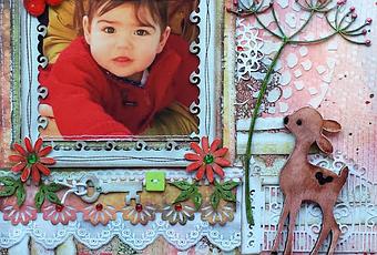 Como puedes ver he aplicado varias técnicas para el fondo, cosido, tintas, pasta de textura y sellos.Te dejo aquí unos cuantos zooms para que veas mejor los detalles: