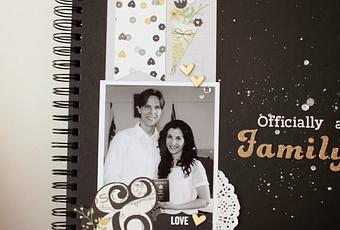 ¡Hola! Hoy os traigo el layout que he hecho con la foto de mi boda civil (como no me casé por la iglesia, tuve que firmar antes). Tenía muchas ganas de hacer algo con ella y la he puesto en la primera página de nuestro álbum familiar.