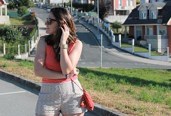 Ya sea en prendas o en complementos, se usan mucho en pantalones, vestidos e incluso en los zapatos. Ya sea atados en el tobillo con una lazada o bien con el fijo en el mismo zapato o sandalia como el caso de las que os enseño en el outfit de hoy Color camel con suela ergonómica, la mar de cómodos para llevar todo el día de un sitio a otro. El detalle bonito y gran protagonista es la gran lazada que la cruza haciendo un zapato/sandalia romántico a la vez que versátil para todo el verano. En este caso lo combiné con toques camel a juego y coral como es la camiseta básica de este tono, shorts con los mismo colores y bolso bandolera. Espero que os haya gustado. Besos y feliz Lunes