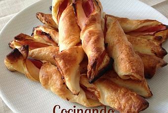 Acomodamos las lonchas de bacon o jamón sobre el hojaldre.