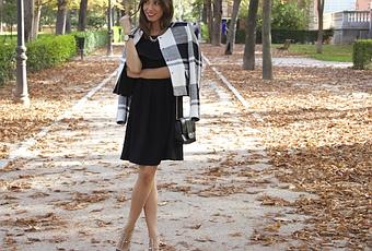 ¿Qué es lo bueno de un LBD aparte de que nos sirva para cualquier momento del día? Que también nos lo podemos poner en cualquier momento del año: en verano con unas sandalias o bailarinas y en invierno con medias y botines para el día o con zapatos cerrados para la noche. Este modelo en concreto me gusta porque es amplio y tiene un pequeño babero en el escote con dos lazos a los lados, ¿os gusta a vosotros? Encima me puse mi blazer estilo crop de cuadros en blanco y negro que ya conocéis. Un bolso negro cruzado con cadena dorada y mis sandalias color block con tachuelas doradas fueron los complementos que escogí para este look que llevé a una cena especial pero que bien podría servir para un día más de trabajo. Aunque sabéis que no suelo llevar muchas joyas y que cuando lo hago me gusta que sean discretas y pequeñas, la seriedad del outfit me hizo escoger este collar de pinchos y brillantes en dorado. Al ser una cena volví a optar por “colorear” mis labios con mi nueva barra de labios roja que además es muy hidratante y el color me dura horas.