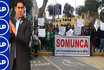 Obreros de la MPC – lamentan que alcalde provincial de Cañete se esconda debajo de su escritorio. No descartan huelga indefinidaLos obreros del servicio de limpieza pública del municipio provincial de Cañete, advirtieron que iniciarán una huelga indefinida, si el alcalde Alex Bazán Guzmán y sus funcionarios no solucionan sus reclamos.Los dirigentes del Sindicato de Obreros Municipales de Cañete (SOMUNCA), tras lamentar que la autoridad edil se esconda debajo de su escritorio y rehúya al dialogo, informaron que han exigido el pago de los siete vales de alimentos que se les deben.“El compromiso es un vale mensual, pero lamentablemente esta gestión no ha respetado los acuerdos y pactos colectivos”, indicaron – tras asegurar que toda la masa trabajadora impaga está dispuesta a no salir a limpiar las calles a pesar de malestar que se creara entre los vecinos del distrito capital.Los manifestantes además de calificar de desastrosa la gestión de Bazán Guzmán, no dudaron de tildar al alcalde de embustero y abusador.“Acá no solo es el tema de los vales, sino también del incumplimiento con los servicios higiénicos, el comedor y un vestuario”, acotaron.