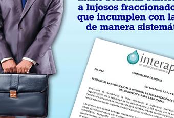 El Grupo Desarrollador La Vista, cada vez que entra una nueva administración municipal, promete regularizarse y a cambio se le otorgan licencias de construcción, sin embargo, no cumple con el proceso. Este año no ocurrió nada distinto, pues el 29 de marzo, solicitó comenzar con el trámite ante Interapas y este organismo, por medio del boletín 064 del 12 de abril aseguró que iba a cumplirlo y entonces podría obtener la cantidad mencionada arriba, por tanto, el Ayuntamiento de San Luis Potosí le entregó a la desarrolladora varios permisos de construcción y traslados de dominio, no obstante, pasaron cuatro meses y la inmobiliaria no se regularizó.