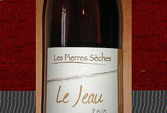 Les Pierres Sèches Le Jeau 2010 (AOC Anjou, blanco con crianza 100% Chenin Blanc, Les Roches Sèches) se elabora con uvas Chenin Blanc de viñedos plantados en 1955 en suelos de esquisto, con rendimientos de 20 hl/Ha. Vendimia manual y vinificación con levaduras indígenas y sin utilización de ningún producto enológico salvo 3 g/hl de sulfito. Crianza de 7 meses en barricas de 5 vinos. Así se obtiene un vino de color amarillo pajizo, con reflejos dorados, muy bonito. Nariz discreta pero elegante, con manzana verde, piel de ciruela y recuerdos de cantos rodados húmedos. En boca es un vino seco, frutal (ciruela verde), con muy buena acidez, levemente glicérico, amargoso, y con un final tenuemente salino. Al día siguiente (unas 12 horas con Vacuvin, el resto sin él) el vino evoluciona muy bien, apareciendo notas amieladas que se suman a la manzana, y con una acidez aún algo más viva en boca. Fantástico. Muestra a la vez características de madurez y frescura de juventud, combinadas de una forma que lo hace muy interesante y agradable.
