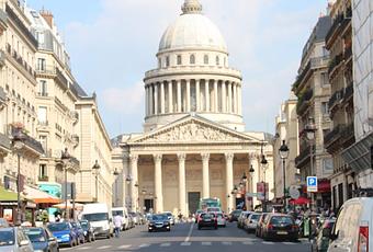 En 1762 frente a la Academia reunida en plenario, Soufflot sostuvo que “empleando los órdenes como los primeros griegos, se podía lograr la luminosidad que muchos admiraban de los monumentos góticos, y (además) podía conseguirse un gran ahorro de material”. El discurso destinado a neutralizar ataques y enemigos, también resume los dos propósitos fundamentales perseguidos por el arquitecto en la iglesia de Sainte Genevieve: por un lado, el diseño eficiente, racional, donde cada pieza tiene su exacta dimensión; y por otro, la invención de una arquitectura que fuera la síntesis exacta del clasicismo griego con el gótico francés. En 1755 comienzan los trabajos en Sainte Geneviève. Obsesionado por aligerar los espesores de muros y el diámetro de las columnas, Soufflot, J.R. Perronet y Gauthey instalaron un laboratorio de ensayos para estudiar la resistencia de los materiales e idearon un conjunto de fórmulas y ecuaciones empíricas que permitían el cálculo de la nueva estructura. 26 años después, y tras la muerte de Soufflot, Jean Baptiste Rondelet acabó la construcción de la iglesia reforzando la estructura que entonces ya amenazaba con desplomarse. Durante la revolución de 1789, la tumba y reliquias de Santa Genoveva –santa patrona de parís y los gendarmes- fueron saqueadas, y el edificio fue propuesto como panteón de ciudadanos ilustres. El nuevo destino fue la excusa perfecta para que Quatrèmere de Quincy cerrara las cuarenta y nueve ventanas perimetrales alterando completamente la transparencia de la estructura original. Voltaire, Rousseau, Marat, Victor Hugo, Émile Zola, Jean Moulin, Marie Curie, Louis Braille, Jean Monnet, Alejandro Dumas y Soufflot descansan en el panteón. En 1851 Léon Foucault colgó su famoso péndulo del centro de la cúpula demostrando la rotación terrestre y la llamada fuerza de Coriolis. En 1995 el péndulo regresó al Panteón.
